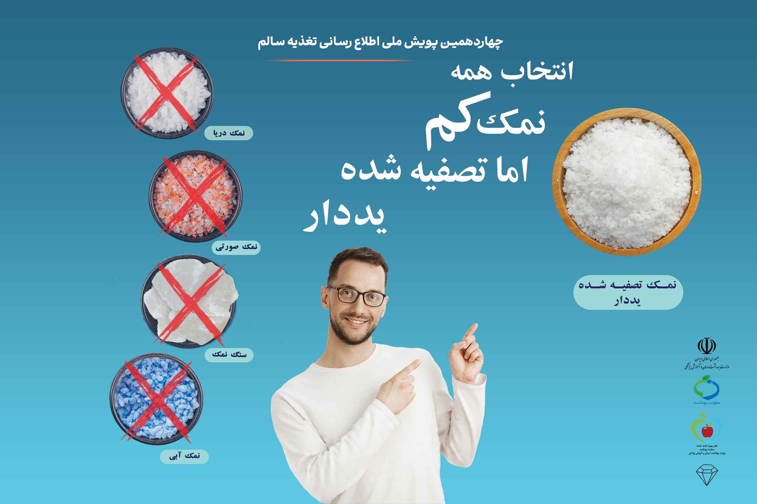 پویش ملی اطلاع رسانی تغذیه سالم با هدف ارتقا دانش افراد جامعه در خصوص مصرف نمک تصفیه شده یددار و همچنین اهمیت مصرف لبنیات با شعار "انتخاب همه: نمک کم و تصفیه شده یددار" و "از کودکی تا پیری، لبنیات دوست سلامتی" از یکم الی پانزدهم بهمن ماه برگزار می شود.